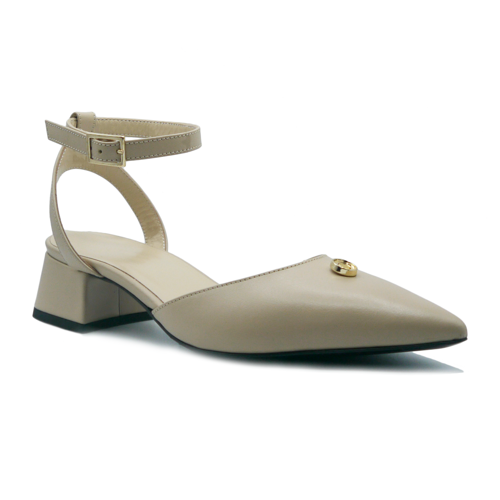 Realizzate in Italia da artigiani, in pelle di vitello beige morbidissimo, con un comodo cinturino intercambiabile. Sulla punta è presente un aggancio su cui applicare gli accessori gioiello.