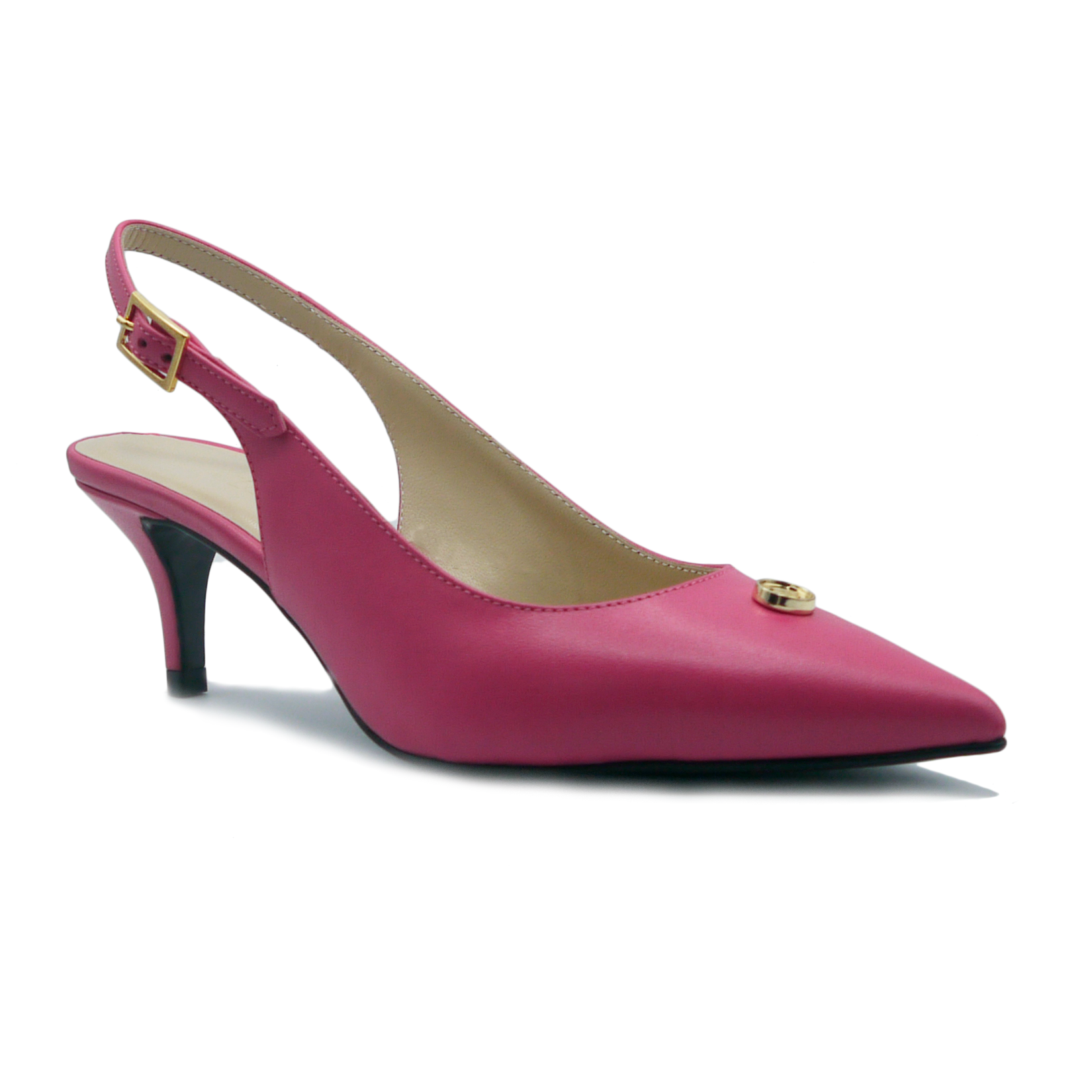 Realizzate in Italia da artigiani, in pelle di vitello fucsia morbidissimo. Sulla punta è presente un aggancio su cui applicare gli accessori gioiello.
