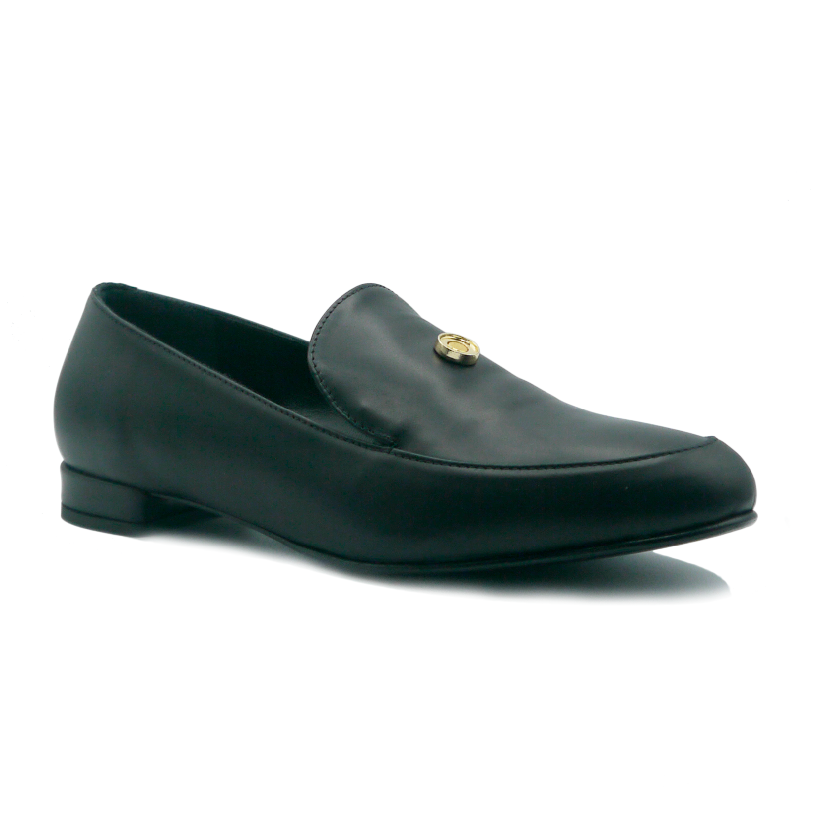 Realizzate in Italia da artigiani, in pelle di vitello nero morbidissimo. Sulla punta è presente un aggancio su cui applicare gli accessori gioiello.